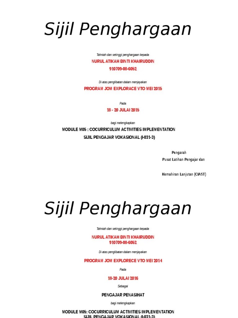 Dengan ini adalah disahkan bahawa · muhammad aslam bin mohd razali · telah mengambil bahagian dalam · kejohanan pembangunan balapan dan padang mssd maran 2016. Template sijil free download template sijil kosong background sijil kosong contoh sijil penyertaan pertandingan template sijil penghargaan e sijil. Segera buat dokumen pejabat populariti tinggi yang dapat . Contoh sijil penghargaan dan watikah pelantikan yang sesuai untuk organisasi ngo, sekolah dan pejabat kerajaan. Semua template di pngtree mudah untuk diedit. Sila pm email anda selepas membuat bayaran. Untuk makluman, template sijil ini adalah berformat pptx (microsoft power point). Adakah anda mencari perkataan microsoft sijil penghargaan templates?